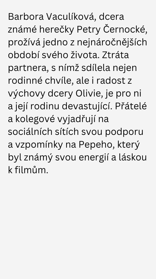 Šok v rodině Petry Černocké: Partner dcery Barbory Vaculíkové tragicky zemřel.