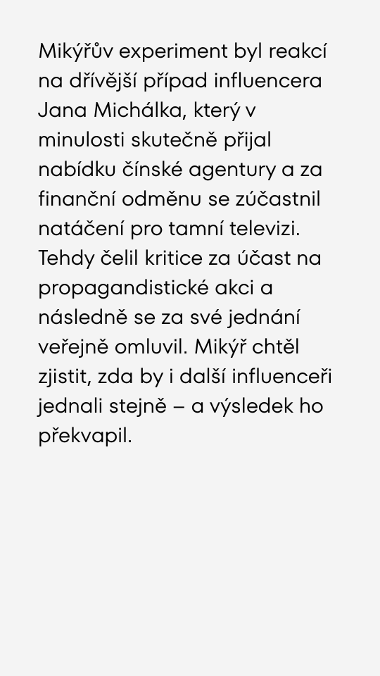 Mikýř lákal influencery na údajně placenou cestu do Číny. Influenceři nyní hrozí žalobami.