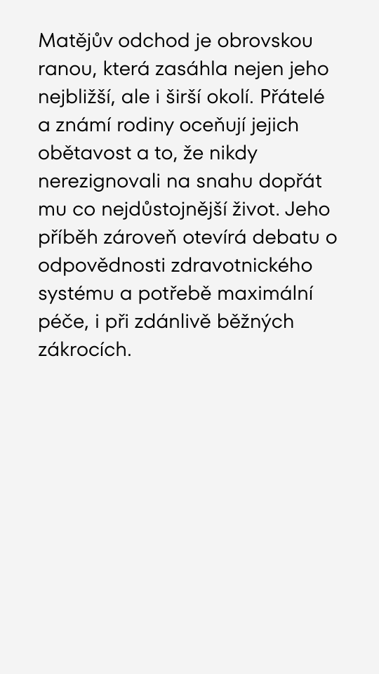 Zemřel sedmnáctiletý Matěj, který jako malý ochrnul po trhání madlí.