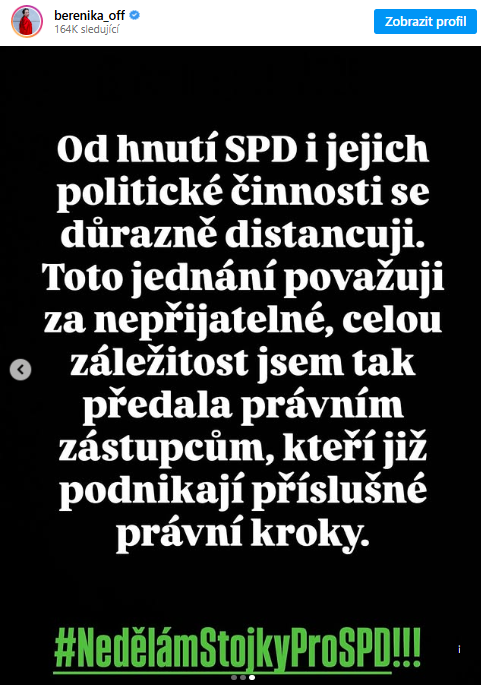 Berenika Kohoutová zjistila, že její píseň „Dělám stojky“ byla zneužita v předvolební kampani SPD bez souhlasu.