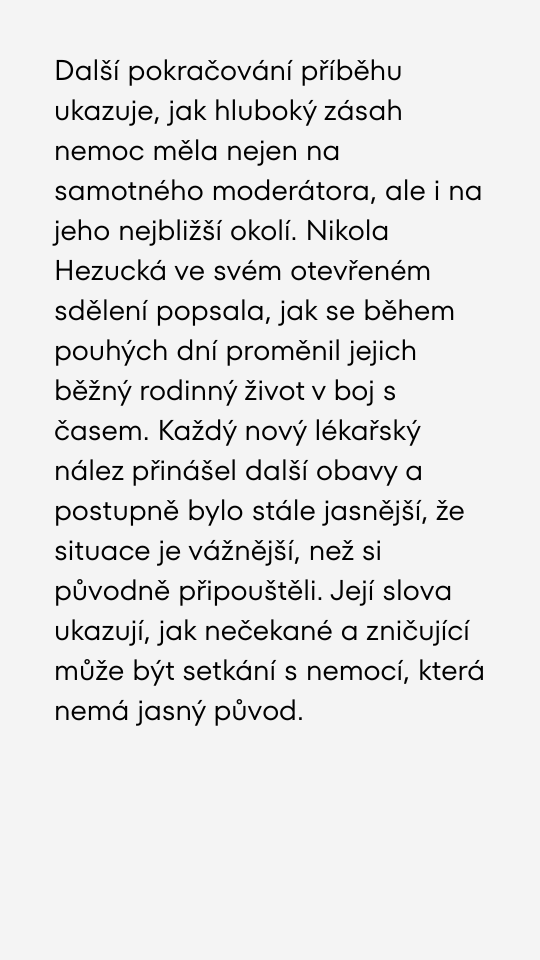 Bleskový zvrat v životě Patrika Hezuckého. Lékaři popsali, proč nemoc postupovala tak neuvěřitelně rychle.