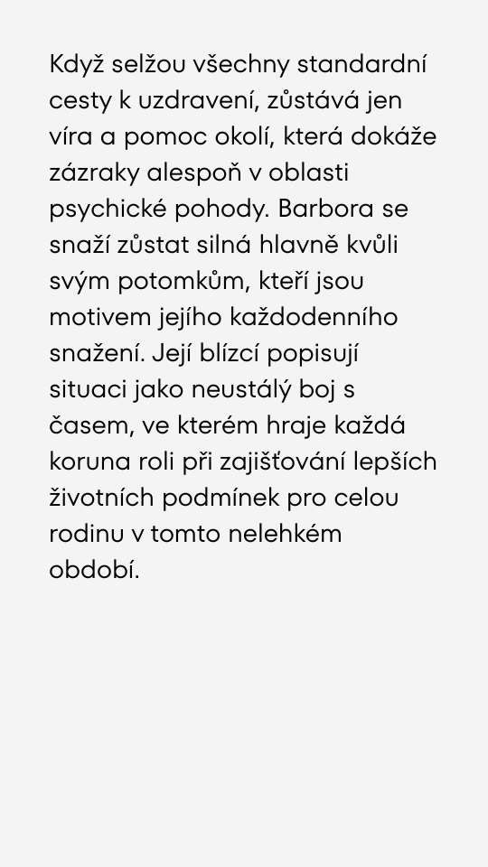 Rodina prosí o pomoc pro Baru Tluchořovou. Léčba selhává a prosí o finanční podporu.