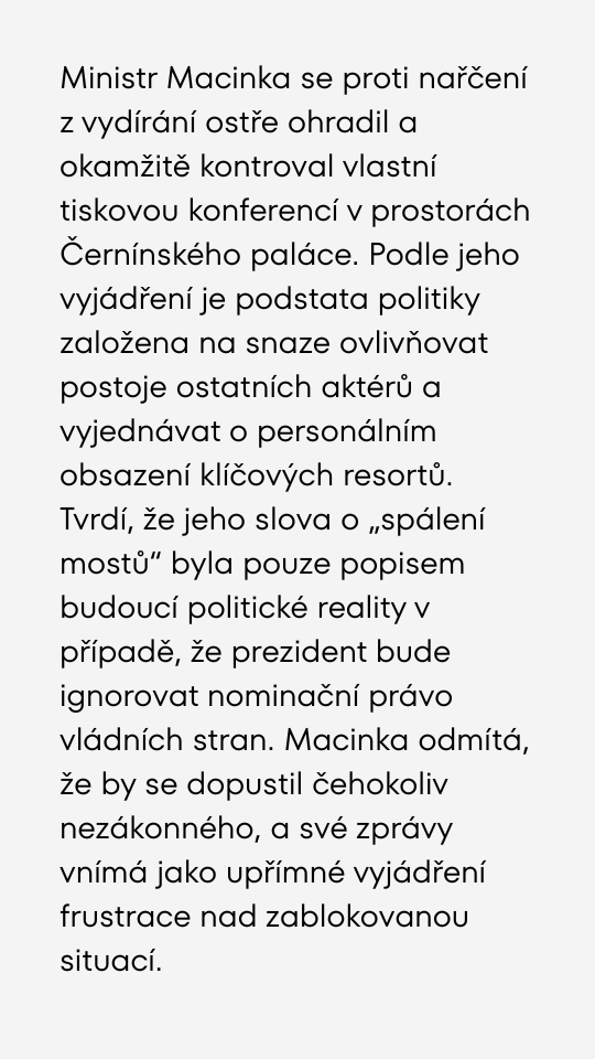 Skandál na Hradě. Ministr Macinka pod palbou kvůli vydírání prezidenta.