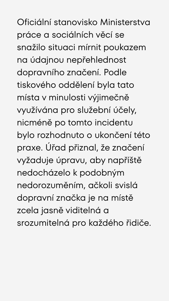 Arogantní chování na ministerstvu. Vysoce postavená úřednice parkovala na místě pro invalidy a oháněla se funkcí.