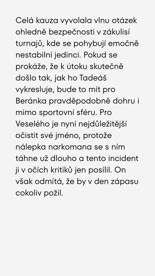 Tadeáše Veselého do zápasu nepustil doktor. Prý za to ale může Leo Beránek, který ho napadl.