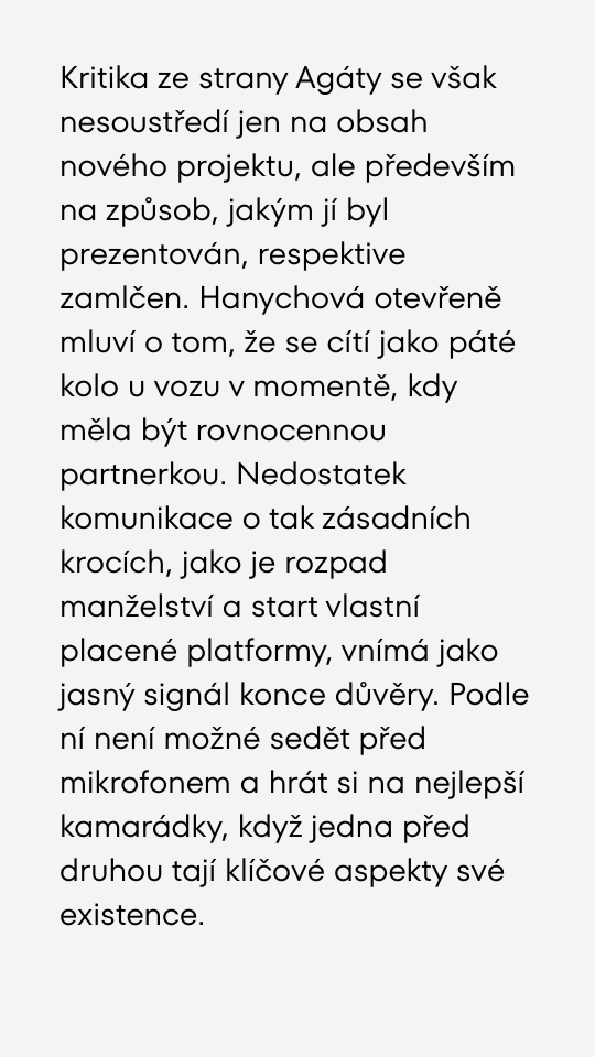 Konec velkého přátelství? Agáta Hanychová chce odchod Ornelly z podcastu.