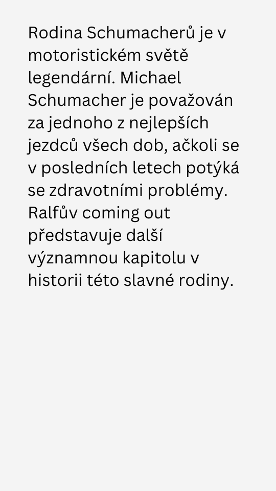 Nečekaný coming out Ralfa Schumachera. Jak dlouho vše tajil?