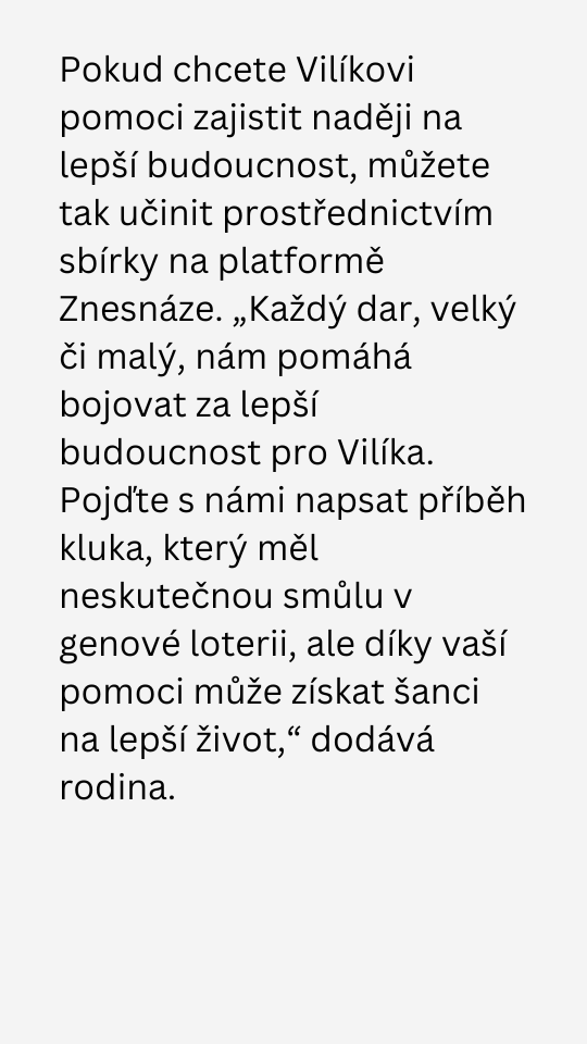 Příběh ročního Vilíka připomíná osud Martínka. Vilík potřebuje "jen" 20 miliónů ...