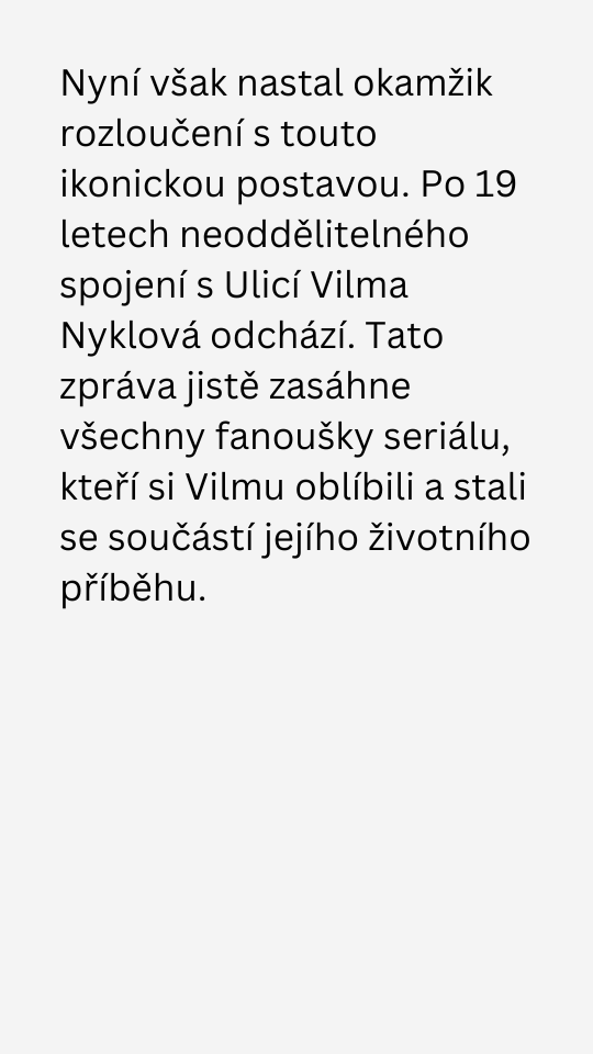 Devatenáct let a konec! Vilma Nyklová odchází z Ulice.