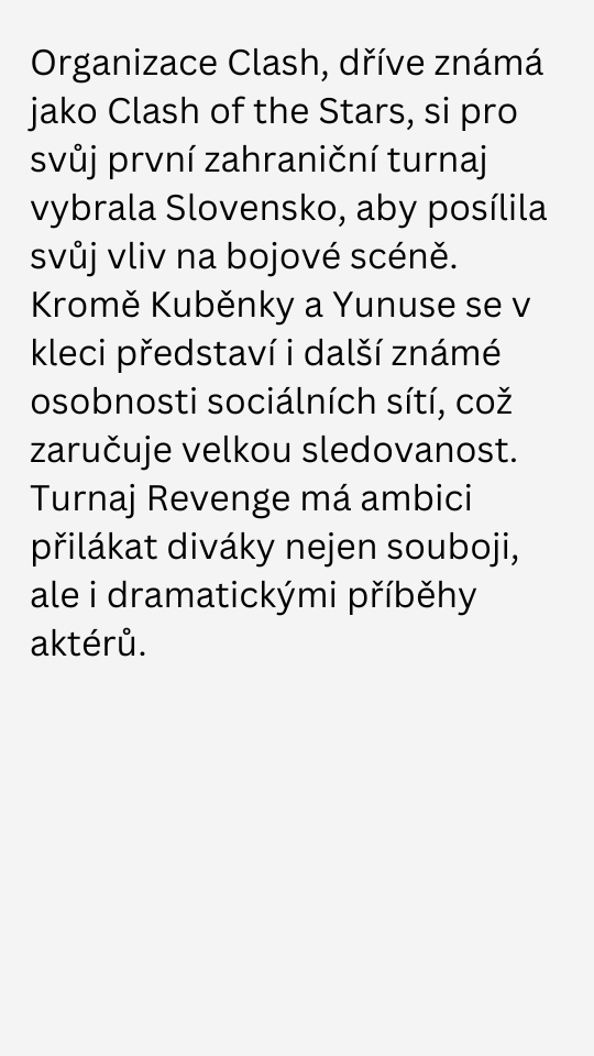 Tadeáš Kuběnka se vrací do Clashe. Utká se s ex Sugar Denny.