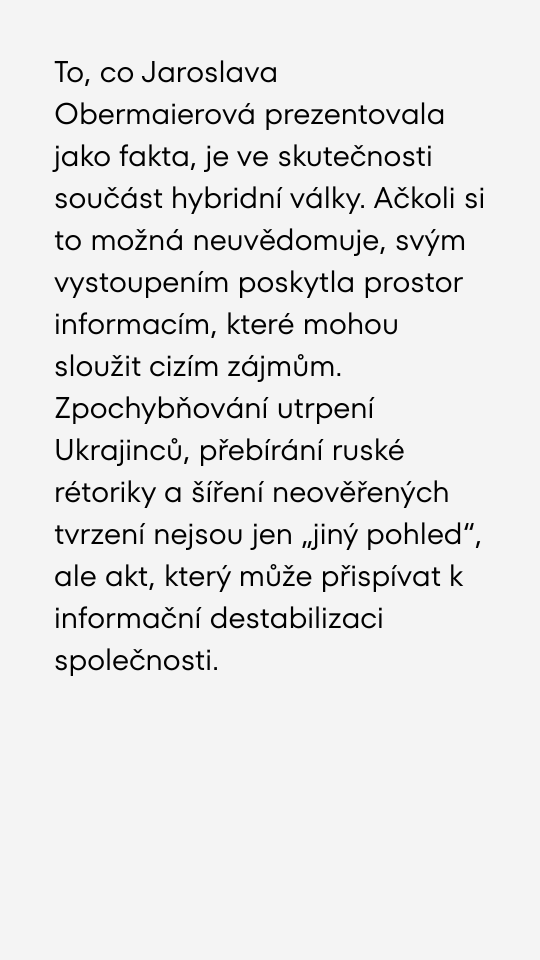 Herečka Jaroslava Obermaierová pronesla šokující výroky, které silně rezonují s proruskou propagandou.