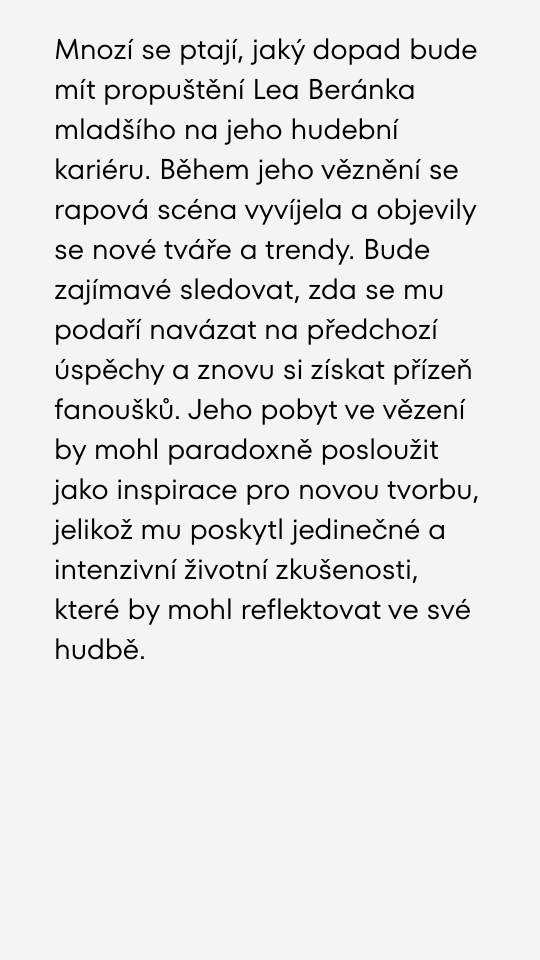 Kontroverzní rapper Leo Beránek mladší míří na svobodu a hned se chystá na festival do Varů.