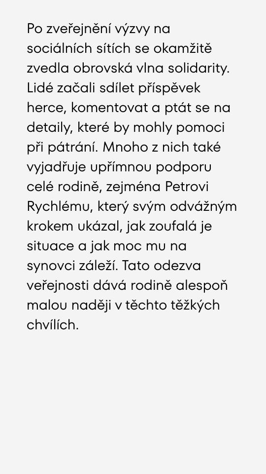 Petr Rychlý se obává nejhoršího. Jeho synovec po hádce s matkou zmizel.