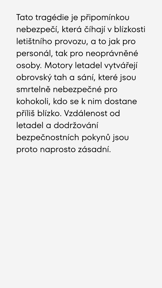 Tragédie. Muže nasál motor popojíždějícího letadla na letišti.
