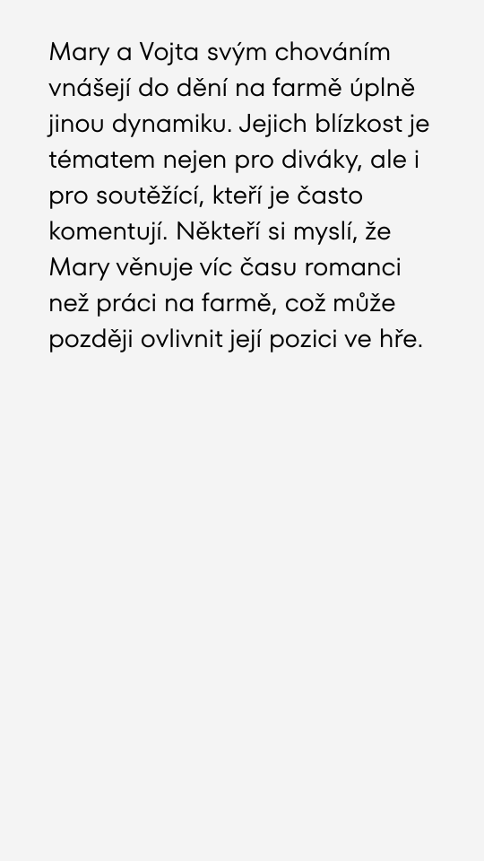 Románek v reality show Farma. Mary z Bachelora dělá vše pro to, aby dostala Vojtu do postele.