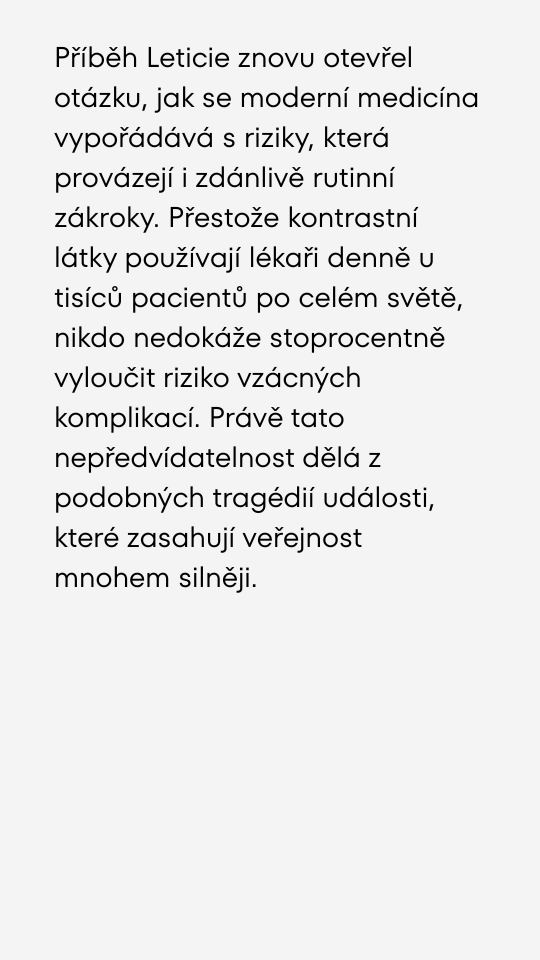 Rutinní CT vyšetření stále 22letou ženu život. Utrpěla těžkou alergickou reakci