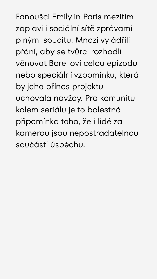 Šok při natáčení Emily in Paris. Štáb se musel vyrovnat s tragickou událostí.