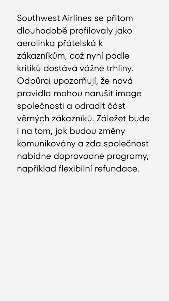U letecké společnosti Southwest Airlines si budete muset koupit dvě sedadla, pokud jste "plus size".