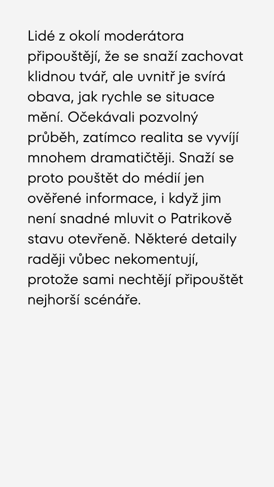 Nemoc bohužel vyhrává. Stav Patrika Hezuckého se prý zhoršil.