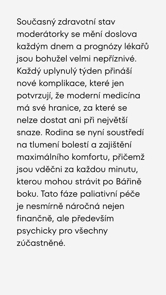 Bývalá moderátorka z rádia Kiss Bára Tlučhořová svůj boj s rakovinou prý prohrává.