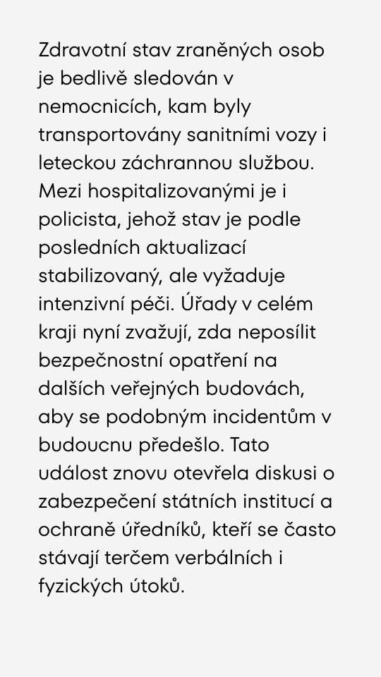Střelba na obecním úřadě na Děčínsku si vyžádala dvě oběti.