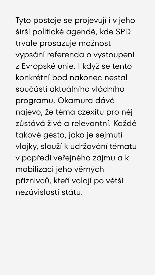 Tomio Okamura nechal odstranit vlajku EU ze své kanceláře.