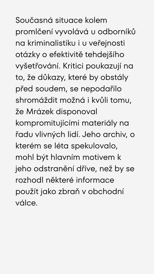 Vražda krále podsvětí Mrázka zůstane bez trestu.