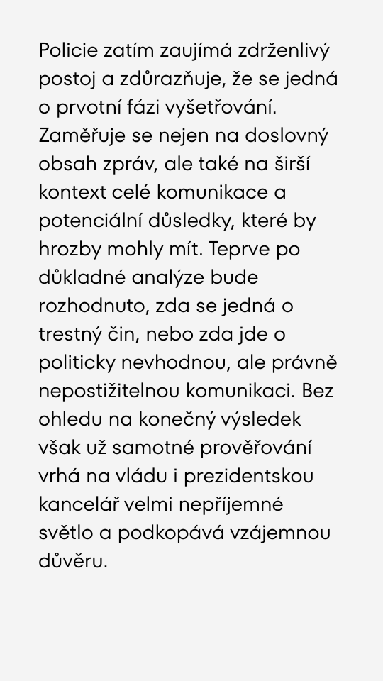 Policie se poprvé vyjádřila ke kauze SMS. Prezident Pavel obvinil ministra z vydírání.