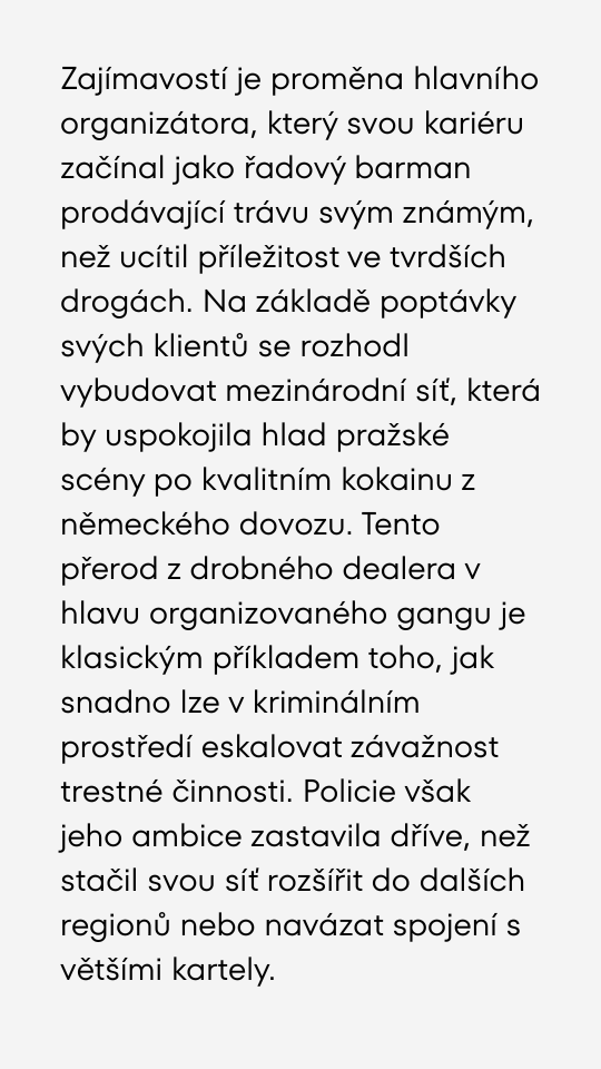 Čech prý ukrýval kokain v dortech vozil jej do Prahy.