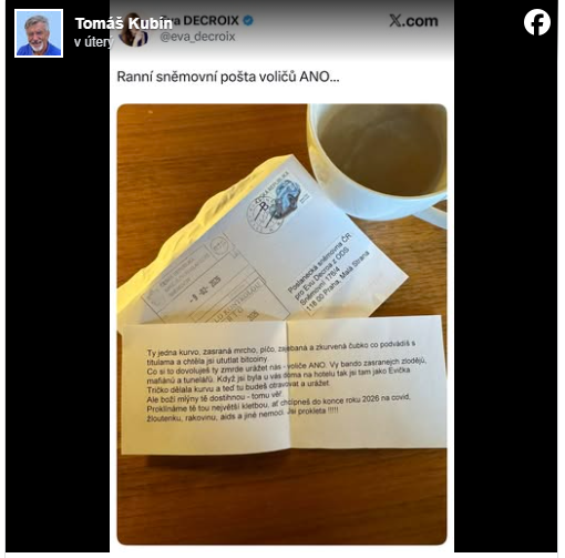 Agresivní útok na české političky. Výhrůžky smrtí v anonymních dopisech.