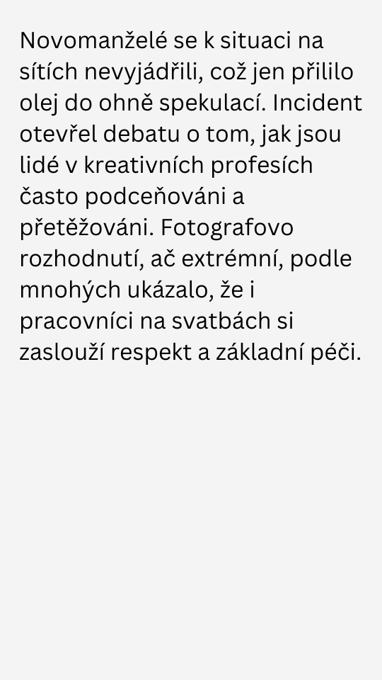 Hladový fotograf smazal všechny fotky novomanželů. Zakázali mu jídlo i pití.