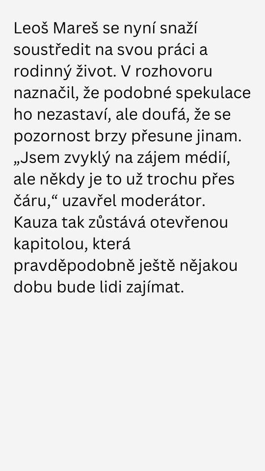 Leoš Mareš poprvé promluvil o aféře s asistentkou.