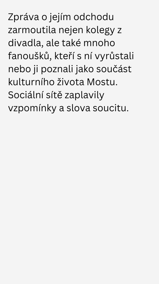 Ve věku 49 let zemřela česká herečka známá ze seriálů seriálů Most! či Sestřičky.