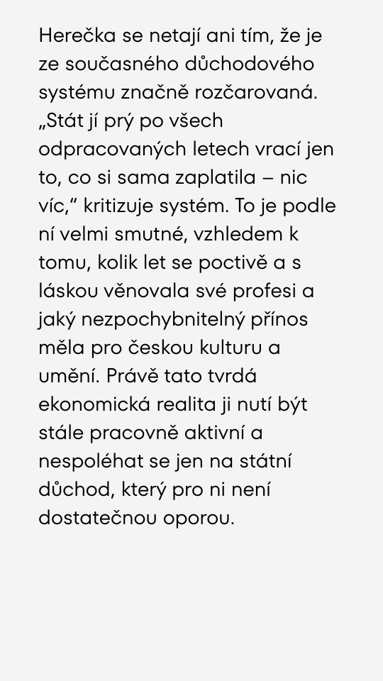 Jana Paulová musí pracovat i ve skoro 70 letech. Na důchod se spolehnout nemůže.