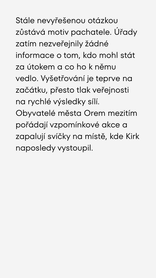 Trumpův spojenec Charlie Kirk byl zastřelen. Vrah je na útěku.