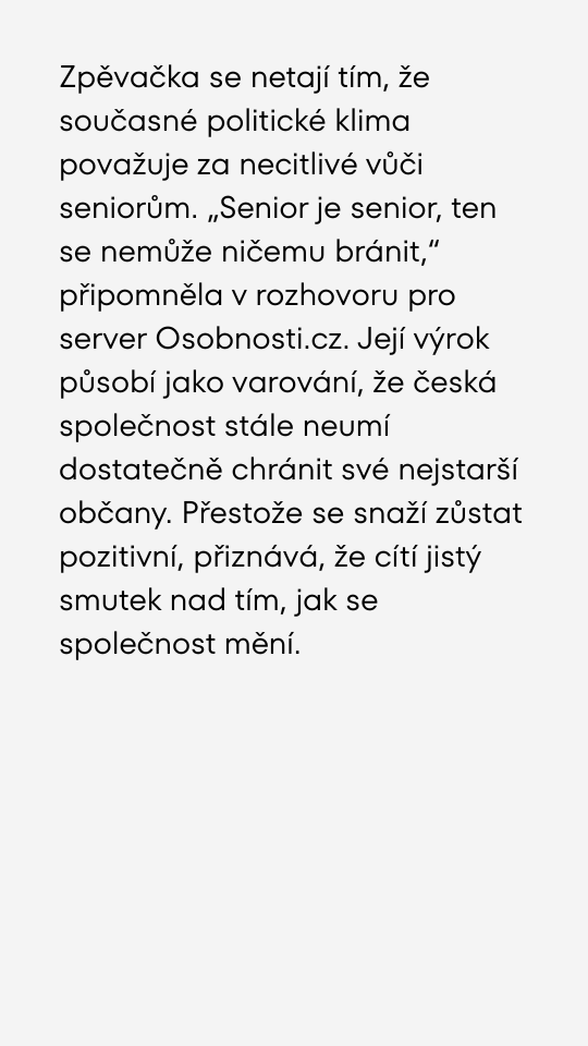 Yvetta Simonová promluvila otevřeně o životě v domově seniorů i o důchodech: „Politici si myslí, že staří už nic nepotřebují."