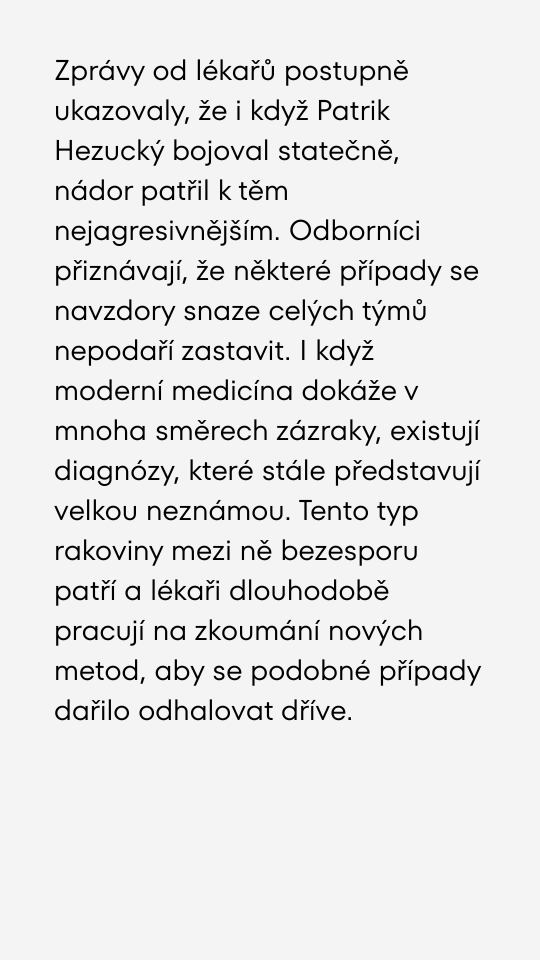 Bleskový zvrat v životě Patrika Hezuckého. Lékaři popsali, proč nemoc postupovala tak neuvěřitelně rychle.