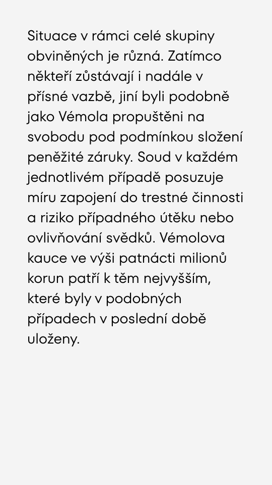 Karlos Vémola byl propuštěn z vazby. Musel složit 15-ti miliónovou kauci.