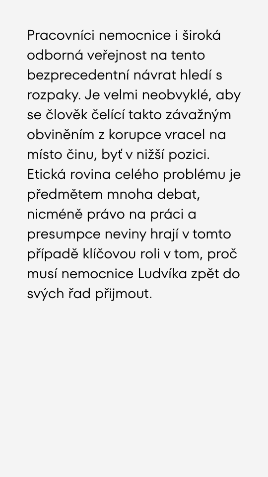Bývalý šéf motolské nemocnice Ludvík se po propuštění z vazby vrací do Motola.