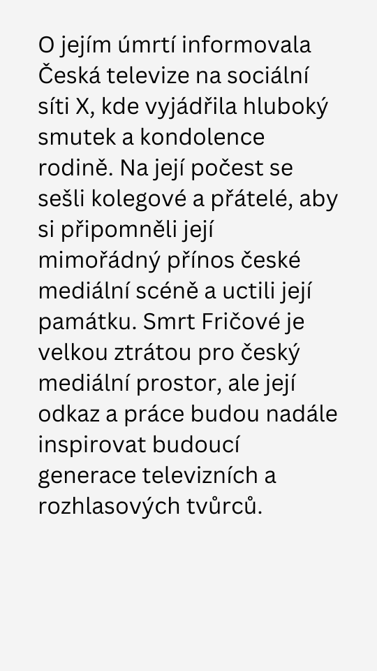 Zemřela jedna z největších tváří českých televizí a někdejší šéfka ČT.
