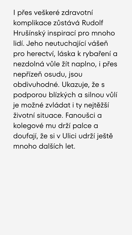 Hvězda Ulice Rudolf Hrušínský bojuje s vážnou nemocí.