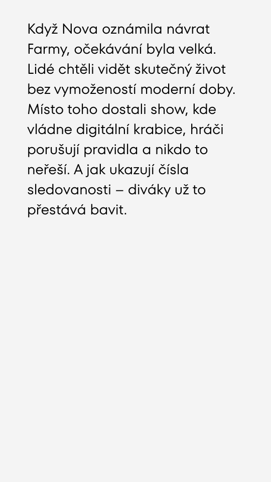 Reality show Farma diváky netáhne. Nova pro ní hledá ideální čas.