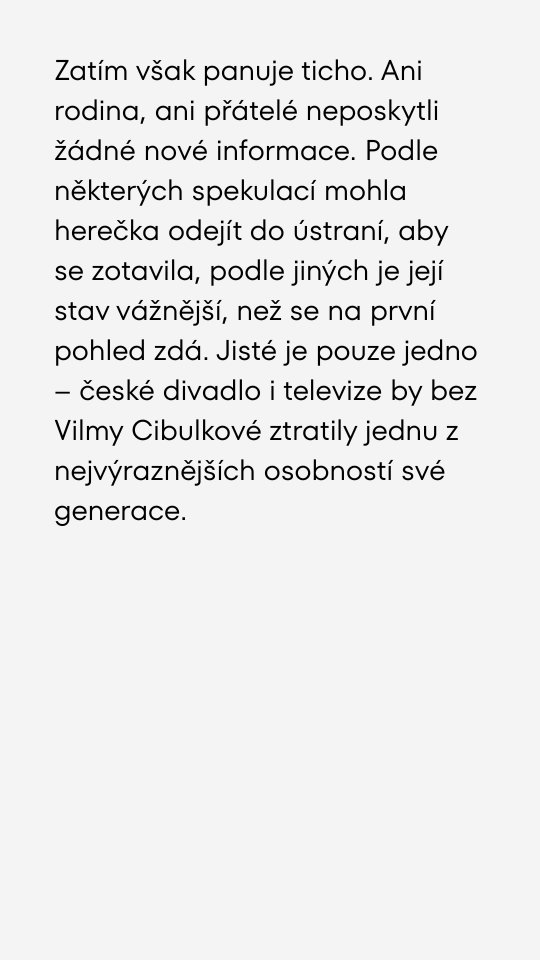 Herečka Vilma Cibulková po kolapsu beze stopy zmizela! Kolegové i přátelé mají strach o její život.