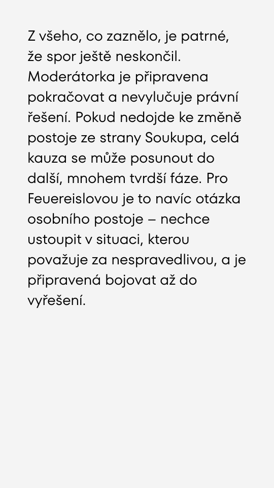 Eva Feuereislová znovu útočí na Soukupa. "Hraje si na milionáře!" Spor o zničené hodinky graduje.