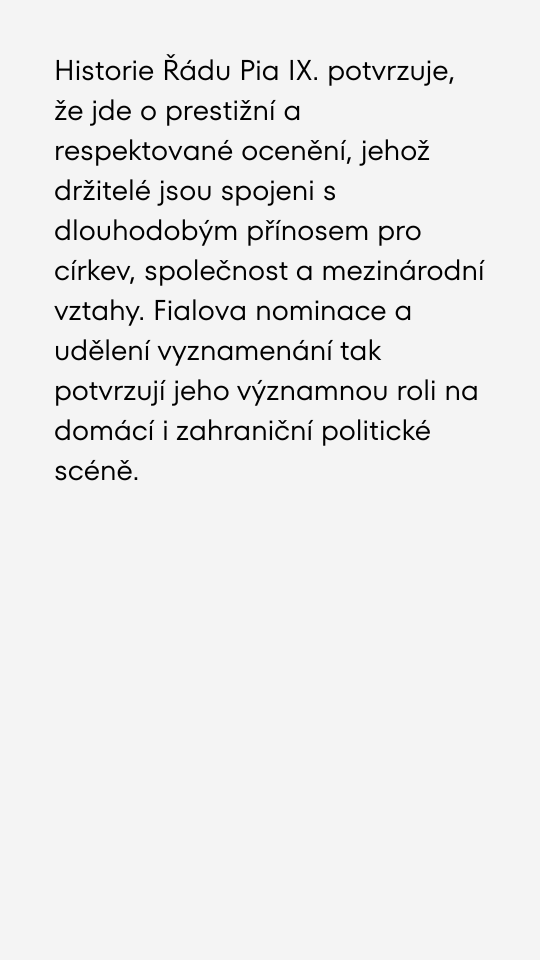 Premiér v demisi Petr Fiala získal prestižní vyznamenání od papeže.