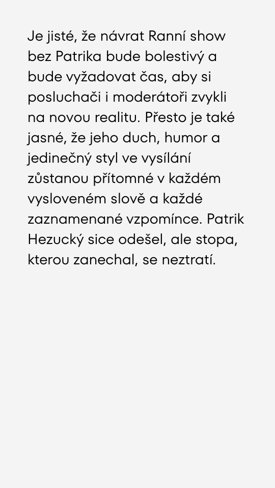 Po odchodu Patrika Hezuckého zavládl v éteru tichý šok a rádio oznámilo datum posledního rozloučení.