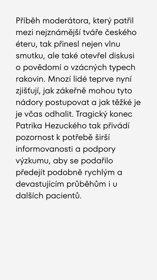Bleskový zvrat v životě Patrika Hezuckého. Lékaři popsali, proč nemoc postupovala tak neuvěřitelně rychle.