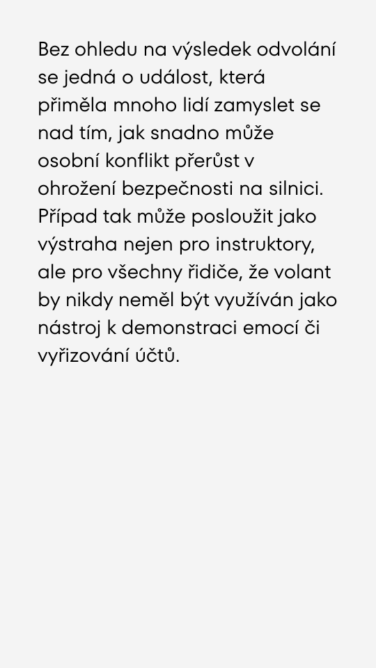 Instruktor autoškoly úmyslně strhl volant žákovi a najel na expartnerku z důvodu žárlivosti.