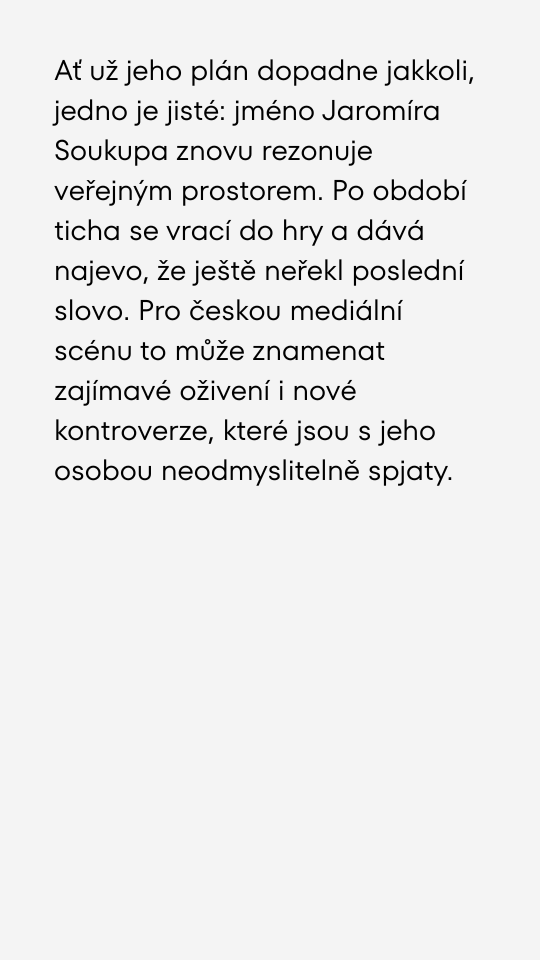 Soukup chystá návrat, který nikdo nečekal. Po tichu přichází velký televizní plán.