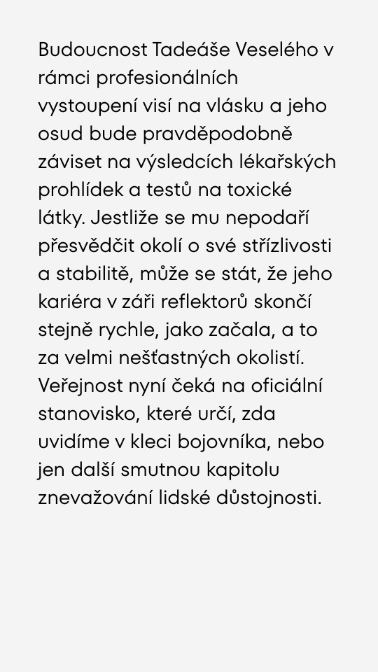 Clash padl na absolutní dno. Strach o život Tadeáše Veselého.